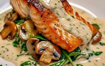 Salmón a la Mantequilla de Ajo con Espinacas y Champiñones en Salsa Cremosa