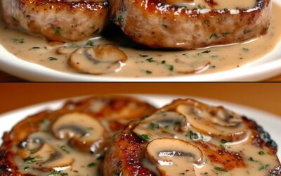 Filetes de Cerdo en Salsa Cremosa con Champiñones + 🥗 Ensalada Fresca